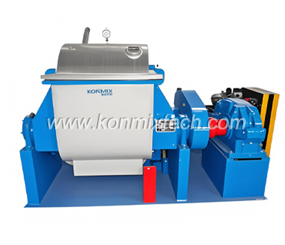 The sigma kneading mixer is produced by a pair of Σ blades that cooperate and rotate to produce strong shear action,